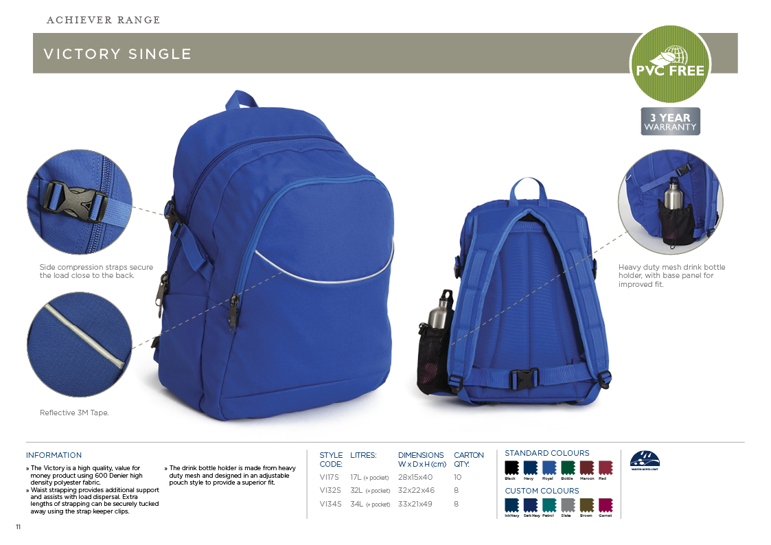 STANDARD COLOURS: Black, Navy, Royal, Bottle, Maroon, Red.