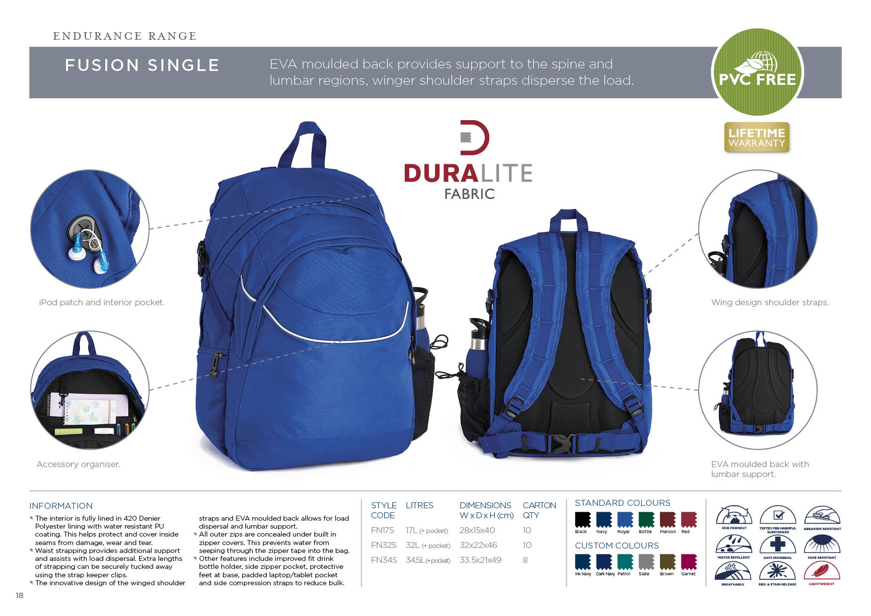 EVA moulded back provides support to the spine and lumbar regions, winger shoulder straps disperse the load.
