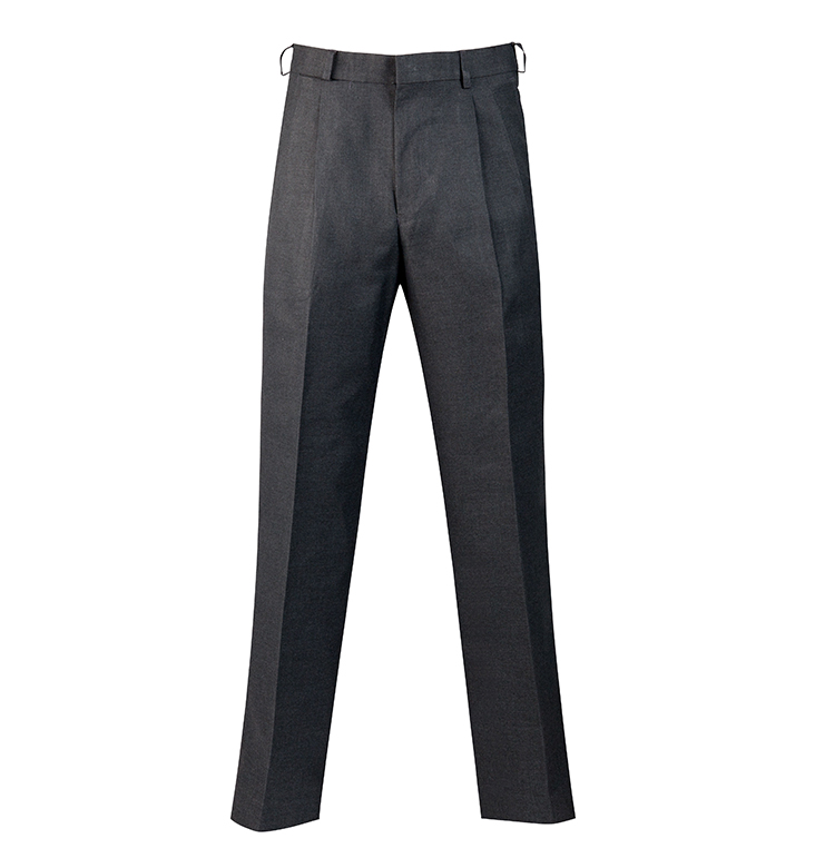 Square weave wool blend top make trouser with pleated front and belt loops, right hand side fob pocket, back jet pocket.